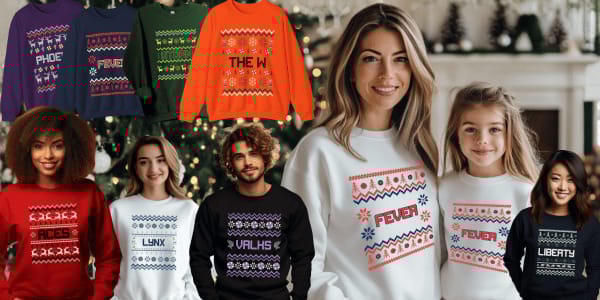 Make your holiday outfit unforgettable. Our WNBA-inspired “sweater” sweatshirts are cozy, fun, and guaranteed to spark conversation — whether you’re at an office party, team gathering, or family get-together.
